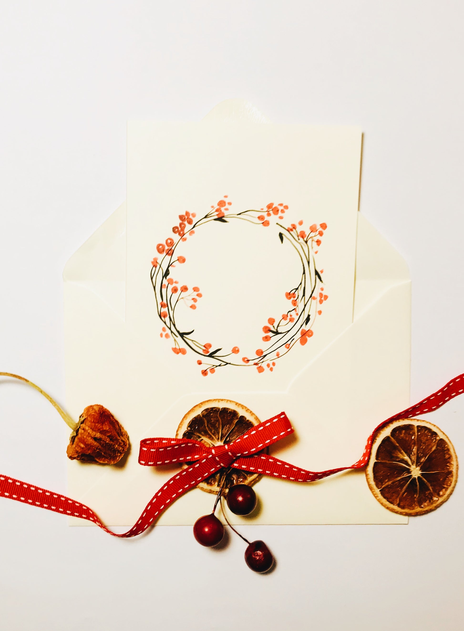 Red Berry Christmas Greeting Card | Festive and Elegant Design | Maria Zvaric Illustration